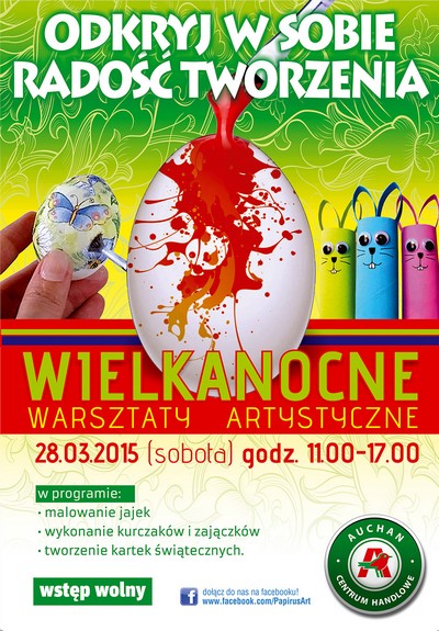 Sobotniemu spotkaniu towarzyszyć będą wiosenne warsztaty wielkanocne. Przy specjalnych stanowiskach najmłodsi będą mogli stworzyć między innymi barwne pisanki, świąteczne kartki z życzeniami dla najbliższych, a także oryginalne zajączki. Maluchy dowiedzą się również, co powinno się znaleźć w tradycyjnym koszyczku wielkanocnym.