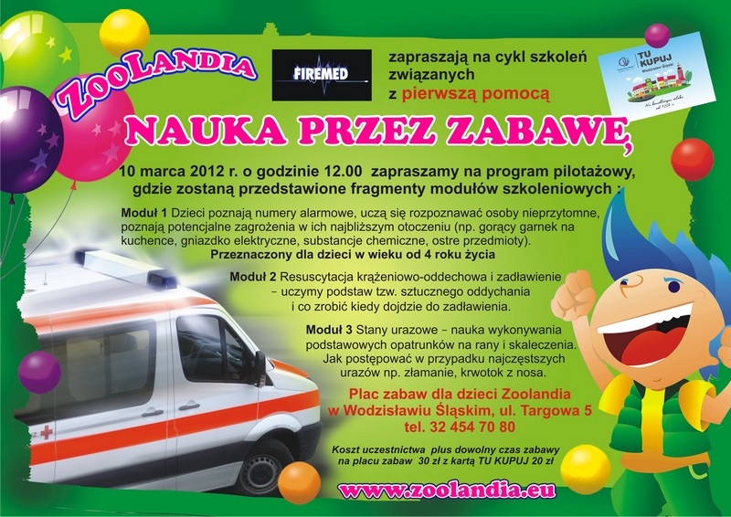 ZOOLANDIA I FIREMED zapraszają na cykl szkoleń związanych z I pomocą "NAUKA PRZEZ ZABAWĘ".