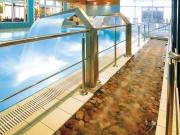 Chwilę relaksu dla całej rodziny zapewni przestronny kompleks basenowy składający się z basenu pływackiego, basenu rekreacyjnego z kaskadami wodnymi, biczami wodnymi i gejzerem, jacuzzi wewnętrzne oraz całoroczne jacuzzi zewnętrzne, ścieżka do kamiennego masażu stóp, łaźnia parowa.