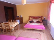 Dodatkowo posiada salę bilardową, salę z ping pongiem, worek trenigowy, piłkarzyki, TV -SaT, dostęp do internetu - WIFI oraz kuchnię. Dla dzieci stworzyliśmy kącik zabaw wewnątrz + kulkolandię, gdzie pociechy mogą porządzić, a rodzicom dać trochę wytchnienia. Teren posesji jest ogrodzony, a na terenie znajduje się miejsce altana z grillem, duży plac zabaw z trampoliną oraz miejsca parkingowe. Goście obiektu mogą również korzystać z żelazka, pralki, rowerów, leżaków. Każdy pokój posiada klucz do drzwi zewnętrznych dla tych, którzy lubią nocne życie. Do obiektu zapraszamy również gości z małymi zwierzętami (po uzgodnieniu z właścicielem).
