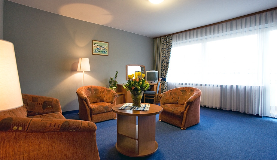 Do Państwa dyspozycji oddajemy 36 komfortowo urządzonych pokoi. Na wyposażeniu każdego z nich znajdują się: łazienka z prysznicem, telewizor, telefon, radio, lodówka, suszarka do włosów, gniazdo internetowo oraz sieć Wi-Fi, wyposażenie plażowe.